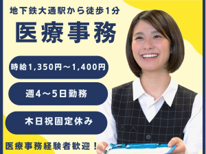 【地下鉄大通駅から徒歩3分】医療事務経験必須!時給1,300円~1,400円 ◎昇給あり!福利厚生充実/受付・医療事務/札幌中央整形外科クリニック