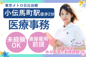 【小伝馬町・馬喰町2分】未経験から医療事務デビュー/時給1700円+交通費全額☆年間休日112日&研修充実♪