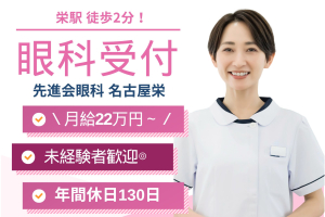 【栄駅徒歩2分】未経験歓迎!年間休日130日でプライベートも充実/眼科クリニック受付スタッフ募集
