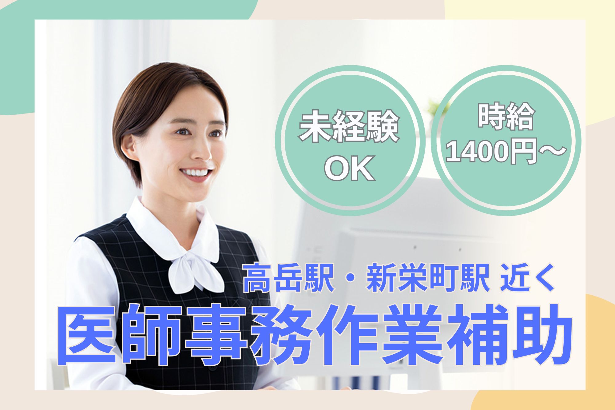 【名古屋市東区】未経験から医療業界へ♪眼科クリニックの医師事務補助/時給1400円~・日祝休み