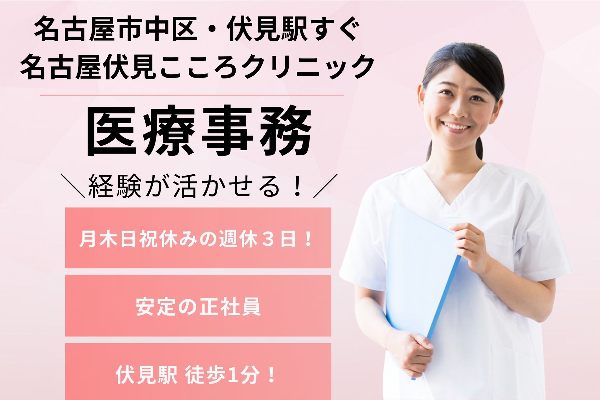 名古屋伏見こころクリニックの求人/名古屋市 中区/医療事務(受付・クラーク)/正社員