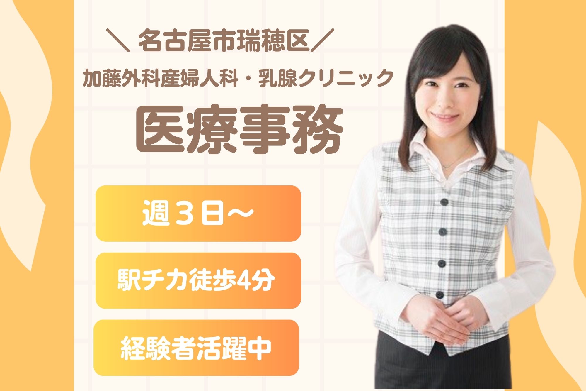医療法人藤渓会 加藤外科産婦人科・乳腺クリニックの求人/名古屋市 名古屋市瑞穂区/医療事務(受付・クラーク)/アルバイト・パート