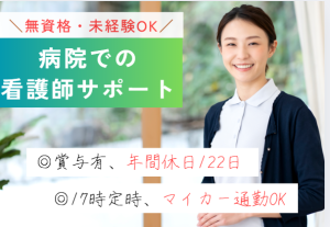 初めてからでも始められる病院内のアシスタント業務です!正社員として活躍しつつ、スキルを磨きませんか?