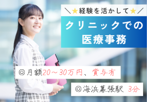 【駅チカ×賞与あり】千葉海浜幕張で月給23万円~/経験者歓迎の医療事務/週休2日&年間休日126日♪