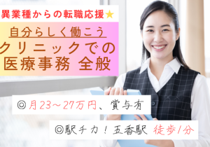 \経験活かして働きたい方におすすめ☆/お試し期間を経て、正社員へ◎クリニックの医療事務員募集中!駅チカ・徒歩1分で通勤らくらく♪賞与年2回&福利厚生充実◎