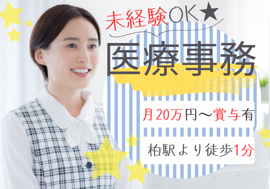 【柏駅徒歩5分】未経験から始める病院ワーク♪駅チカ&週3日~勤務OK/勤務時間帯相談可能です☆