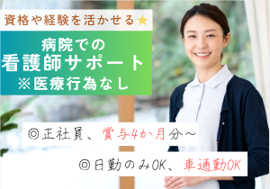 【車通勤OK・駐車場無料】賞与4ヶ月分&正社員募集|日勤のみ相談OK|地域の病院で安定したお仕事を!