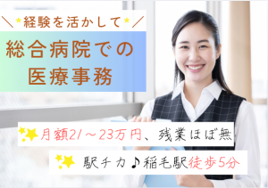 \駅チカ・徒歩5分☆医療事務スキルを活かせる病院受付◎/*20〜50代活躍中◎日祝休み&残業ほぼなし!時給1,400円~1,500円★