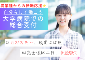 \時給1,400円◎/残業ほぼなし、病院内での受付★未経験から始められます!