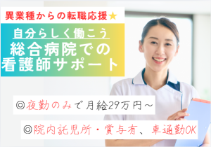 夜勤中心で効率よく収入アップ。未経験から医療の仕事へ◎女性活躍の看護助手★