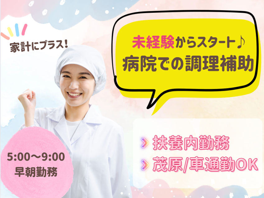 早朝4時間◆1日の時間を有効活用!未経験・資格不問◎車通勤OKの病院調理補助パート