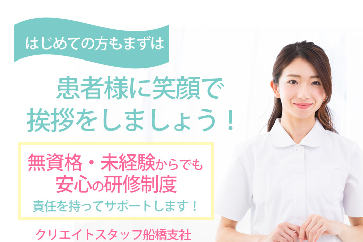 医療行為は看護師や医師がおこないますので、未経験の方も安心してお仕事できます。