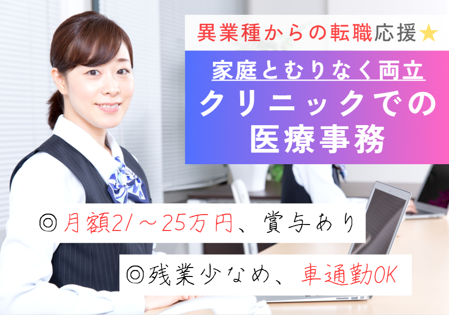 \2024年開院の新しいクリニックです☆/未経験から歓迎の正社員求人です◎月21万円~賞与&昇給もあり!地元で長期的に長く働きたい方におすすめ☆