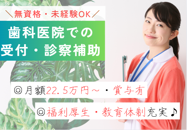歯科クリニックでの受付・診察補助のお仕事です☆