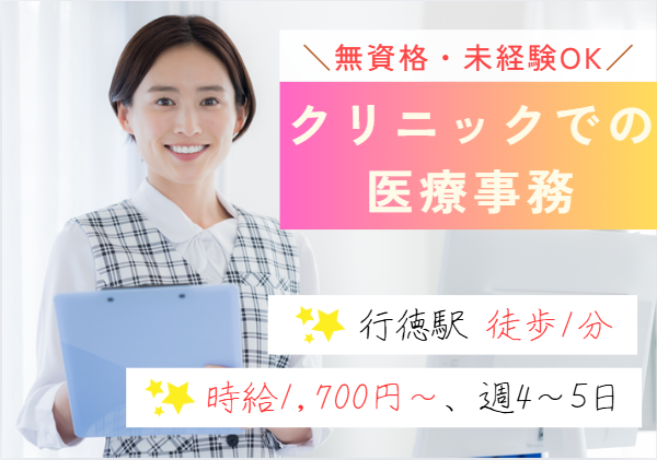 行徳駅徒歩1分*無資格・未経験OK!高時給1700円の調剤事務/賞与あり&女性活躍中