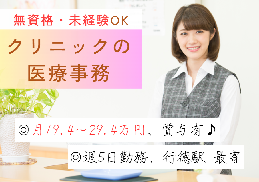 医療法人友康会 行徳中央クリニックの求人/市川市/医療事務(受付・クラーク)/正社員