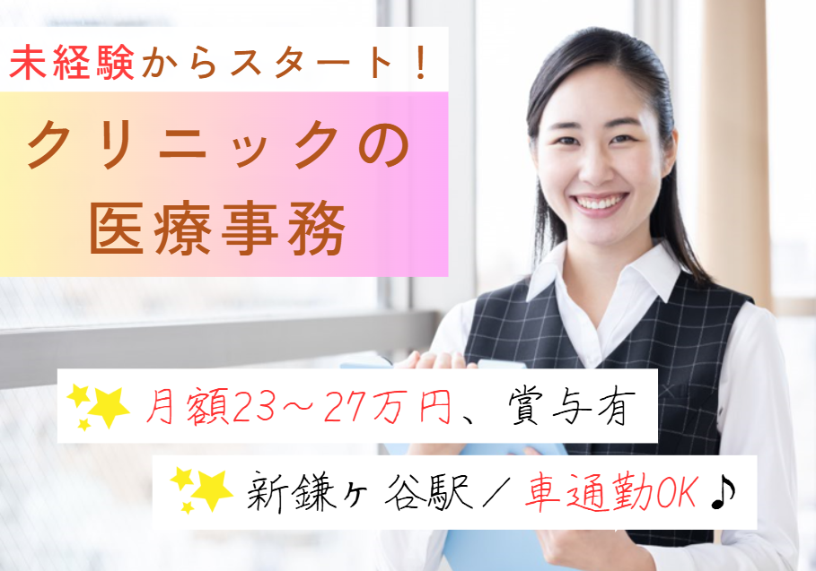 \クリニックでの正社員求人◎月給23万~27万円+賞与年2回☆/車通勤可能&福利厚生も充実★2024年5月に開院のクリニック!