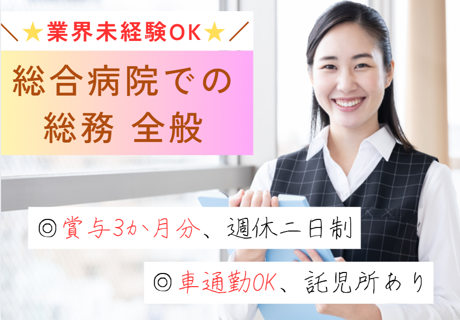 \未経験からはじめる総務・正社員★/有名総合病院でのお仕事◎働きやすさに自信あり!車通勤OK&福利厚生充実♪