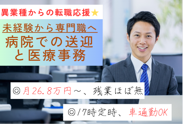 \未経験からOK!送迎&医療事務のお仕事です☆高時給1,700円!/17時定時・残業少なめのお仕事◎患者様の送迎業務があるので、運転に自信がある方募集中☆