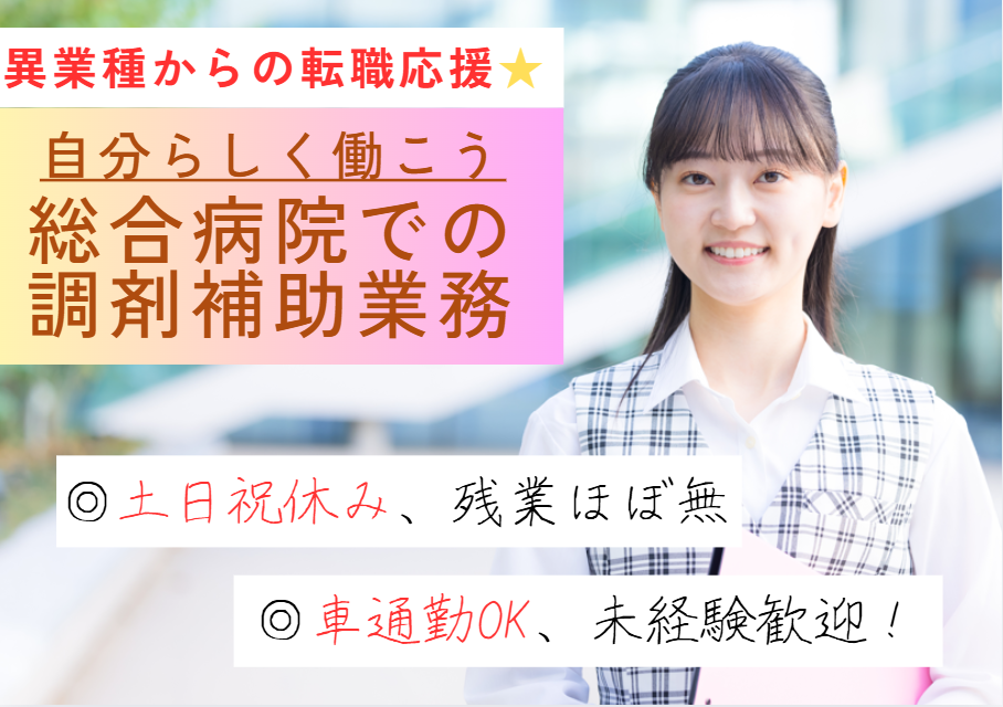 \嬉しい土日祝休み◎17時定時&残業ほぼなし♪/病院での調剤補助/裏方のお仕事です◎
