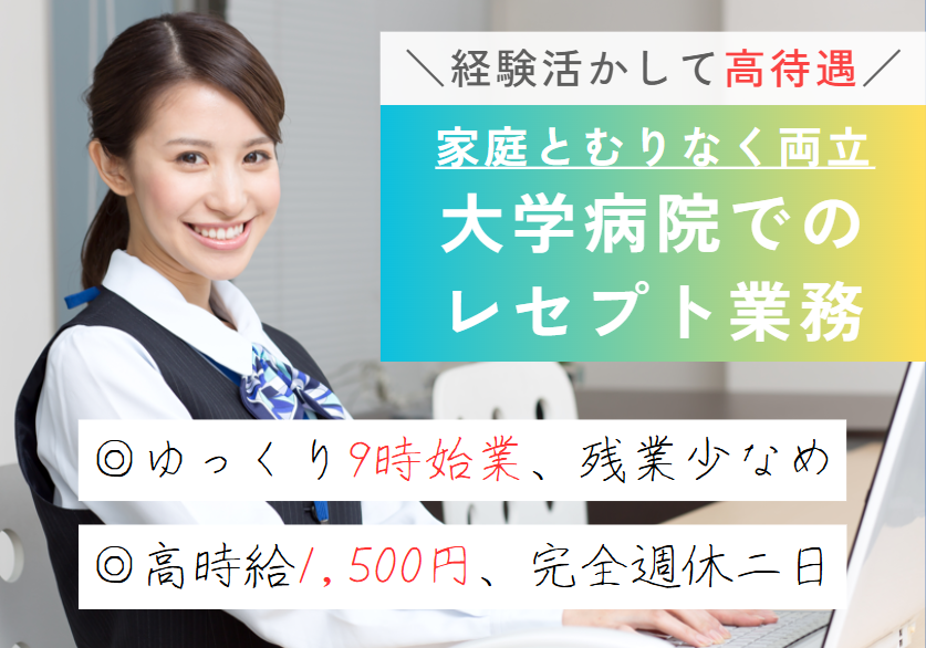 歯科大学病院での「医科のレセプト業務」をお願いします☆