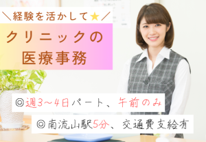 【南流山駅チカ】週3日~扶養内OK◎経験を活かせる医療事務*短時間&午前中のみ♪