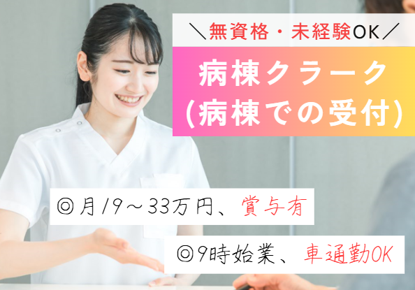 月給19万円~+賞与有◎病棟クラーク*北総栄病院*水日祝休み&ほぼ定時退勤!