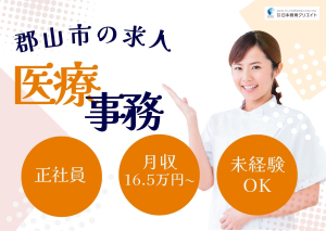 【郡山駅車5分・無料駐車場あり】経験を活かして働けるクリニック事務*月9日休/賞与・各種手当充実◎