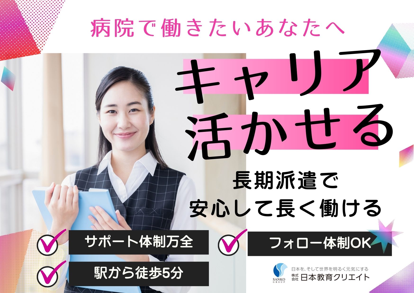 条件に合う求人がないときも、非公開求人や新着求人をご紹介できる場合がありますので、ぜひご相談ください。