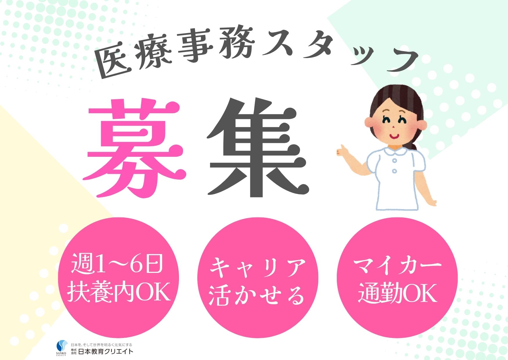 郊外でマイカー通勤しやすい・医療事務の経験があればOK・時間日数相談OK・扶養内もフルも相談OK