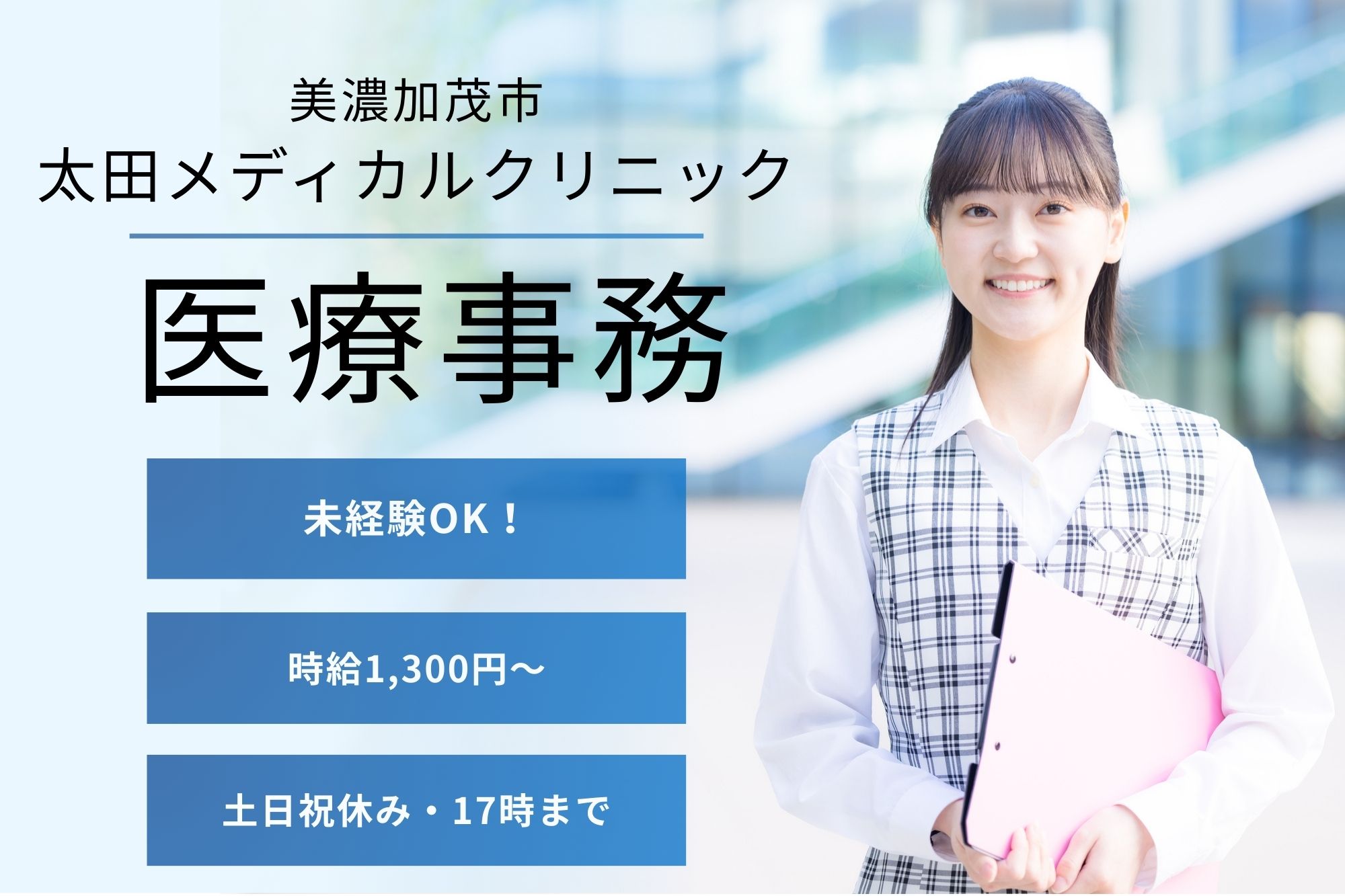 【美濃加茂市】未経験OK!医療事務スタッフ募集◆土日休み&残業少なめ◆交通費全額支給