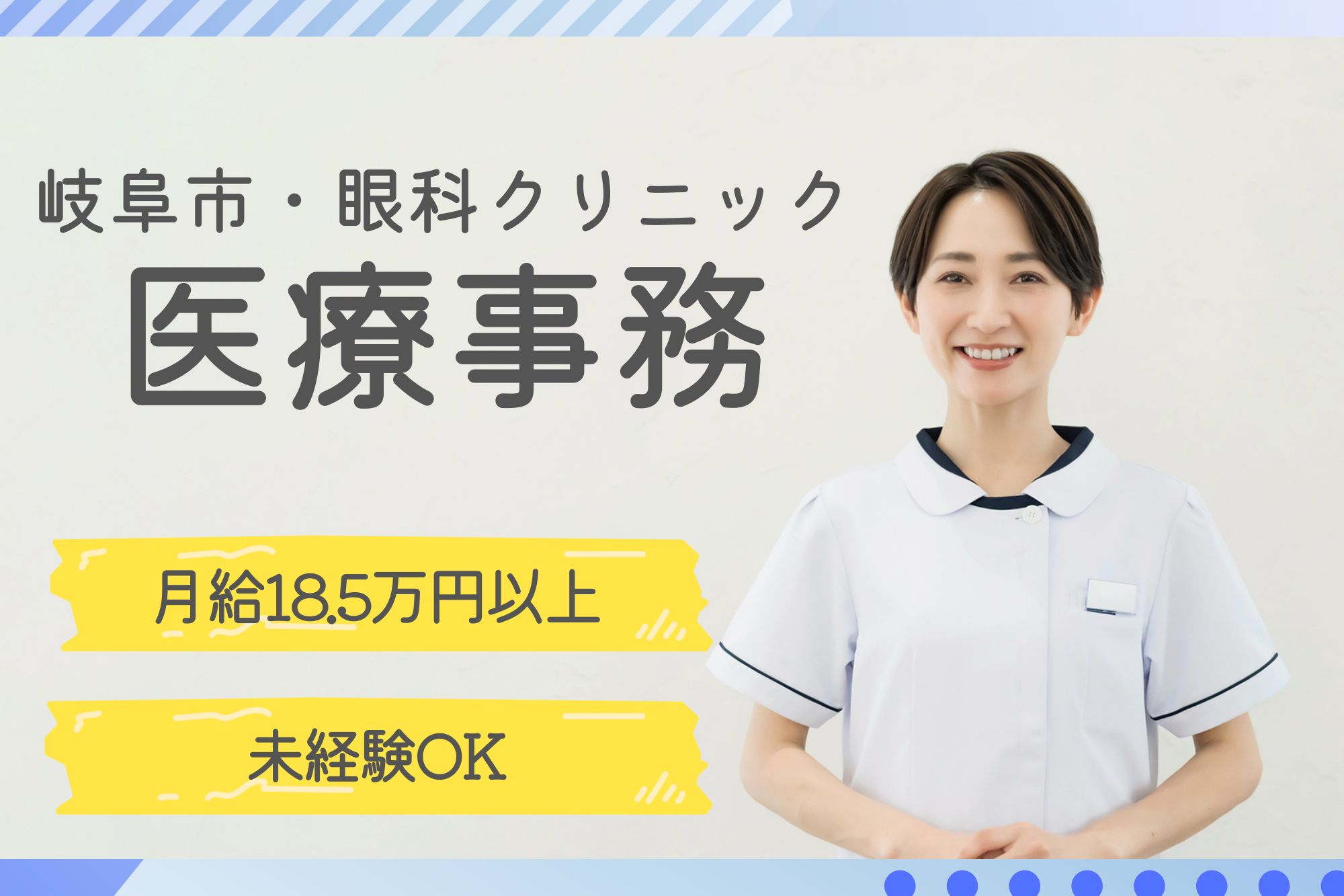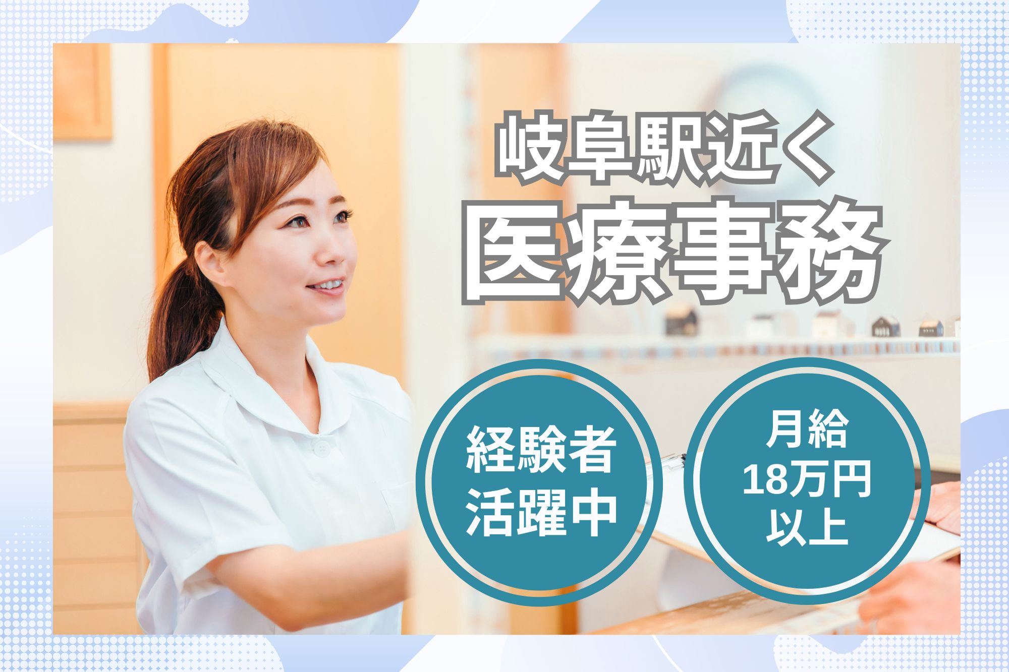 岐阜県の医療事務求人・転職情報を掲載しています!病院への転職、クリニックへの転職をサポートします。医療事務や受付等の職種別や正社員等の雇用形態をはじめ、様々な条件でお仕事を検索できるので、あなたにぴったりの求人情報が見つかります。もちろん、無資格・未経験からはじめられるお仕事もご紹介します。資格取得支援や研修などもありますので安心ですよ☆