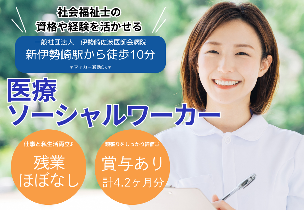 【新伊勢崎駅から徒歩10分】月給19.9万円~25.7万円+各種手当・交通費/残業ほぼなし*社会福祉士の資格や経験を活かせる*医療ソーシャルワーカー