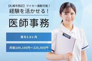 【札幌市西区】月給189,100円~225,900円/医療事務,医師事務の経験が活かせます/賞与3.8ヵ月◎福利厚生、手当充実♪マイカー通勤可能/医師事務/西区の病院
