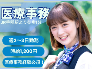 【JR手稲駅より徒歩1分】資格不問、経験必須!週2~3日勤務/勤務日数相談可能/時給1,200円/手稲駅前メンタルクリニック/医療事務