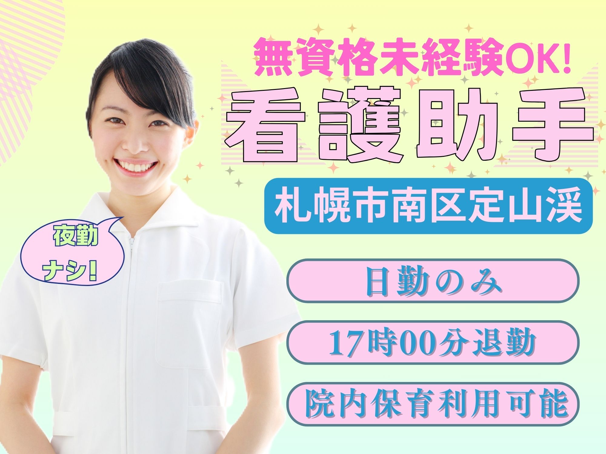 【札幌市南区定山渓】無資格未経験OK!1,150円~1,250円/昇給あり♪院内保育利用可能/残業ほぼなし/夜勤ナシ