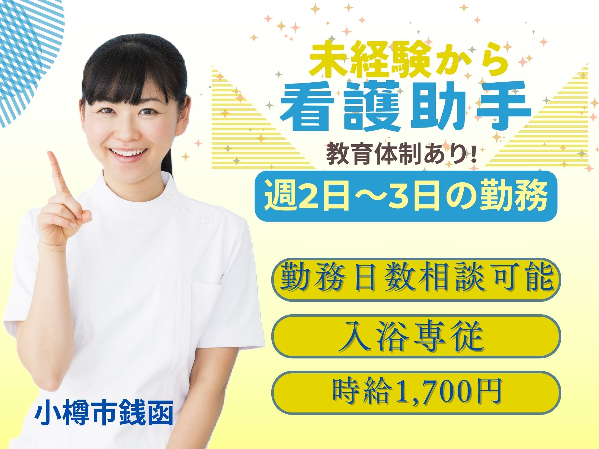 【小樽市銭函】無資格未経験OK!時給1,700円/週2~3日の勤務/勤務日数相談可能♪