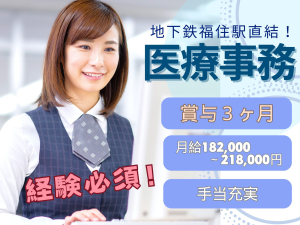 【地下鉄福住駅直結!】月給182,000~218,000円/医療事務経験3年以上の方必見♪賞与3ヶ月/立地抜群!福利厚生充実/医療事務/医療法人社団福亀会 福住整形外科クリニック
