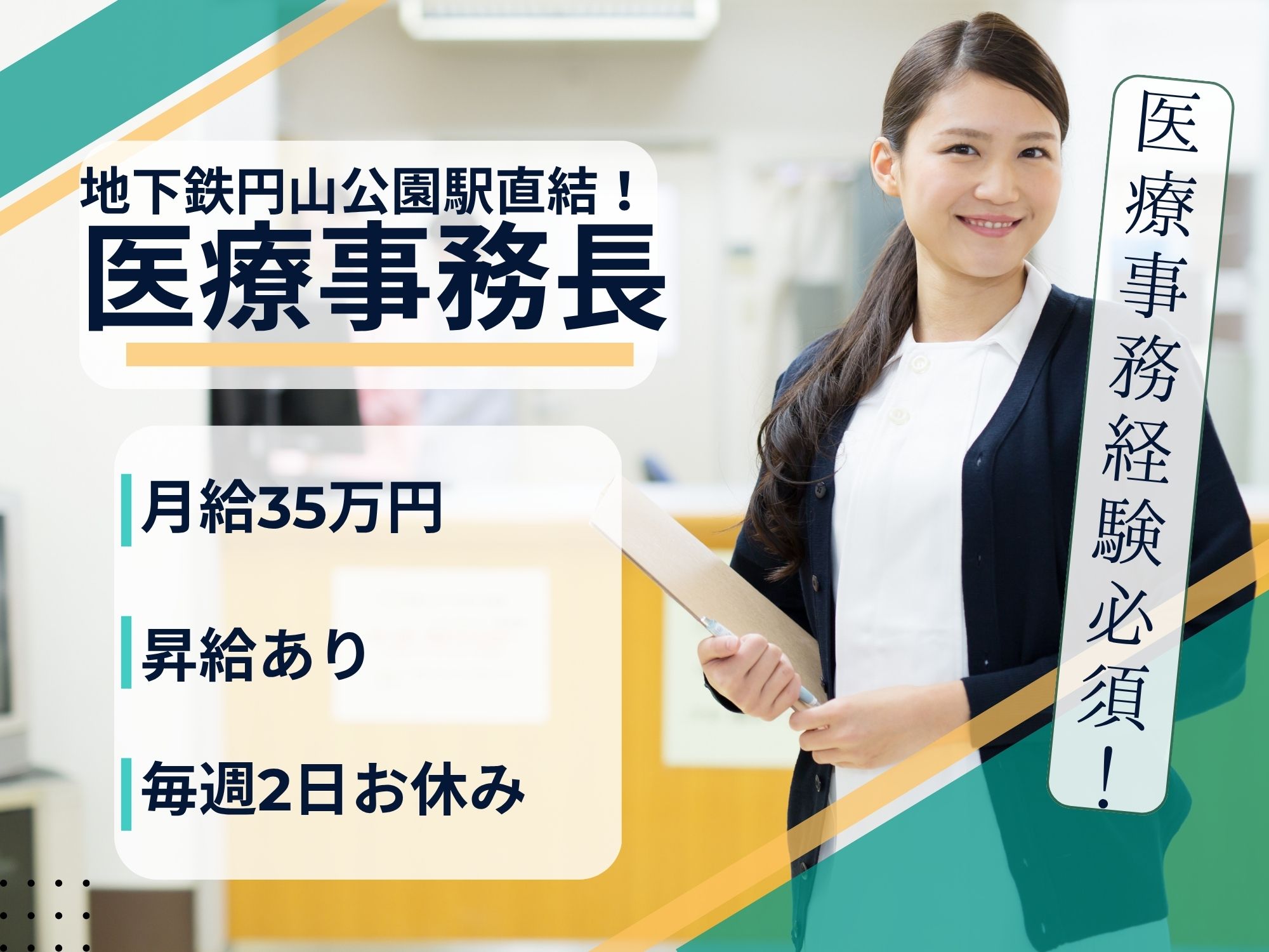 【地下鉄円山公園駅直結!】医療事務の経験があり、管理職として業務ができる方大歓迎!月給35万円/毎週2日お休み/経験によって給与上昇あり!