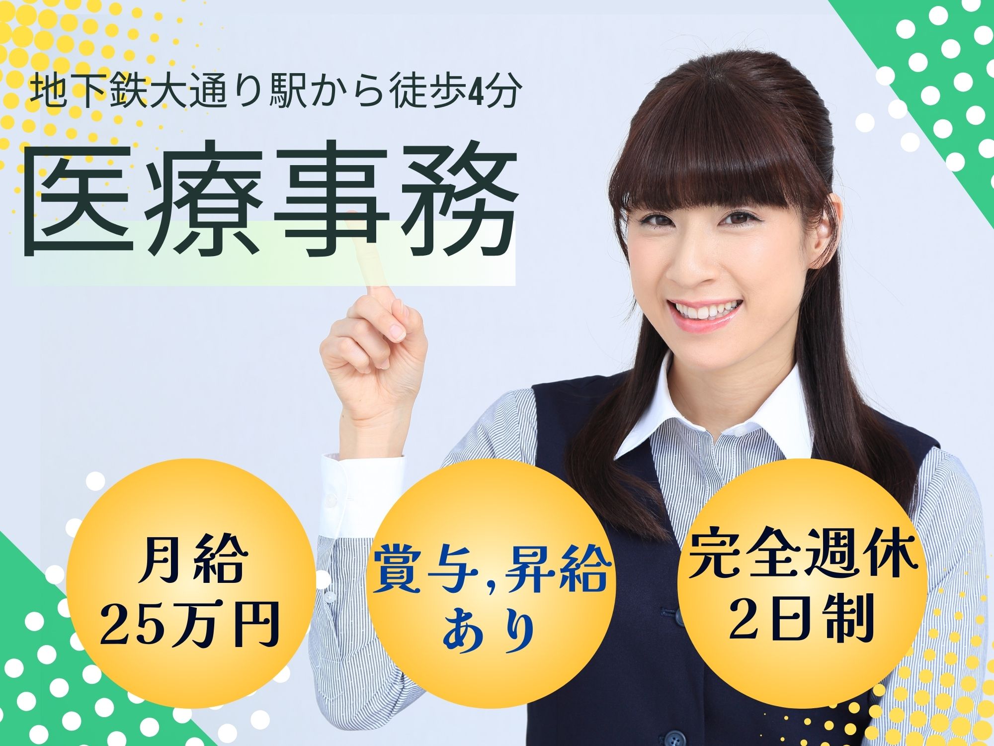 【地下鉄大通り駅から徒歩4分】月給25万円/賞与・昇給あり!完全週休2日制♪