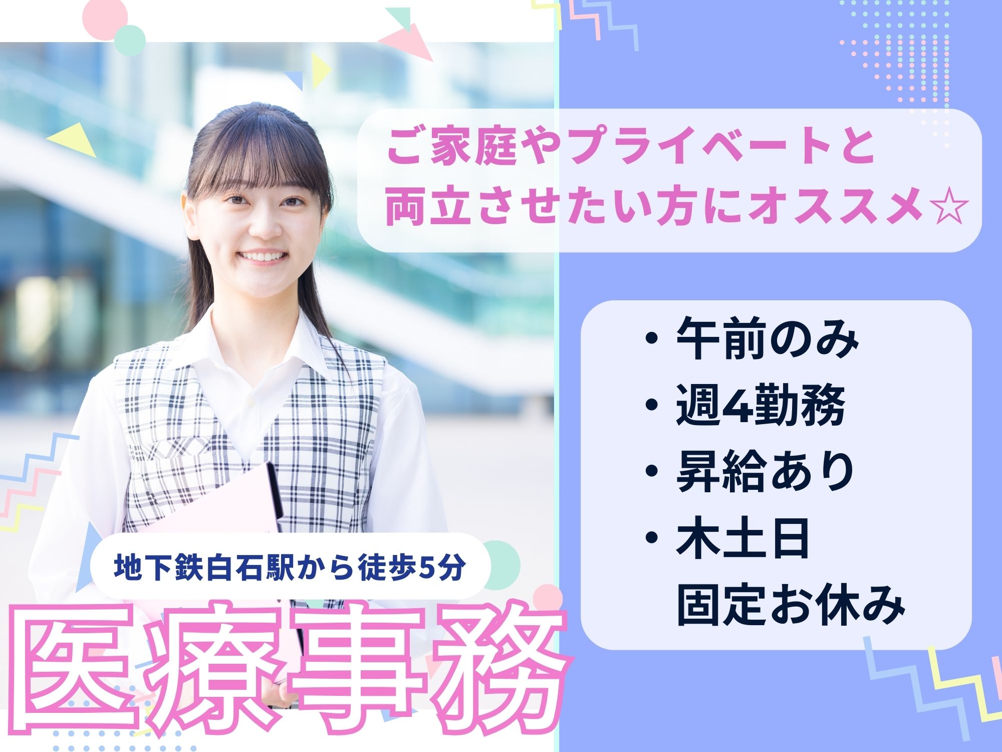 【地下鉄栄町から徒歩3分】勤務時間日数相談OK!扶養枠内勤務可/曜日の固定休み相談可能!時給1,200円/受付経験を活かせる!医療事務のお仕事/マイカー通勤相談可能