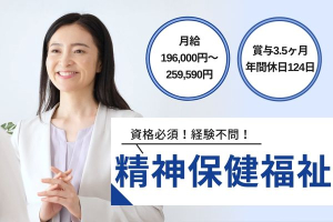 【石狩市花川南】資格必須!未経験OK!月給196,000円~259,590円/賞与3.5ヶ月/年間休日124日/土日祝休み/精神保健福祉士/石狩ファミリアホスピタル