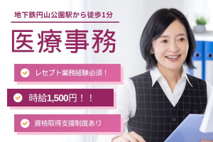 【地下鉄円山公園駅から徒歩1分】レセプト請求の経験必須!高給与!時給1,500円!!教育体制あり/資格取得支援制度あり/日祝固定休み/中央区のクリニック/医療事務