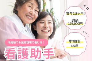 【石狩市花川】無資格未経験OK!月給175,000円/賞与2.8ヶ月/年間休日123日/病棟看護助手/石狩幸惺会病院