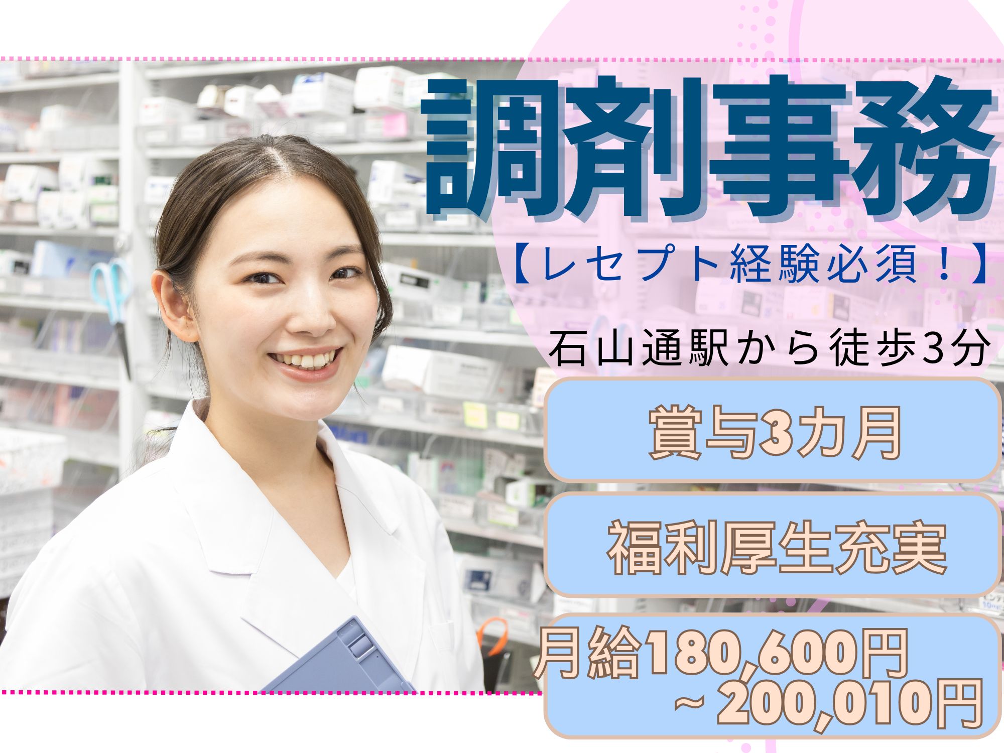 【市電:石山通駅から徒歩3分】レセプトまでの経験必須賞与3ヵ月!昇給あり/土曜と平日1日は午後お休み/福利厚生充実/育児休業取得実績あり