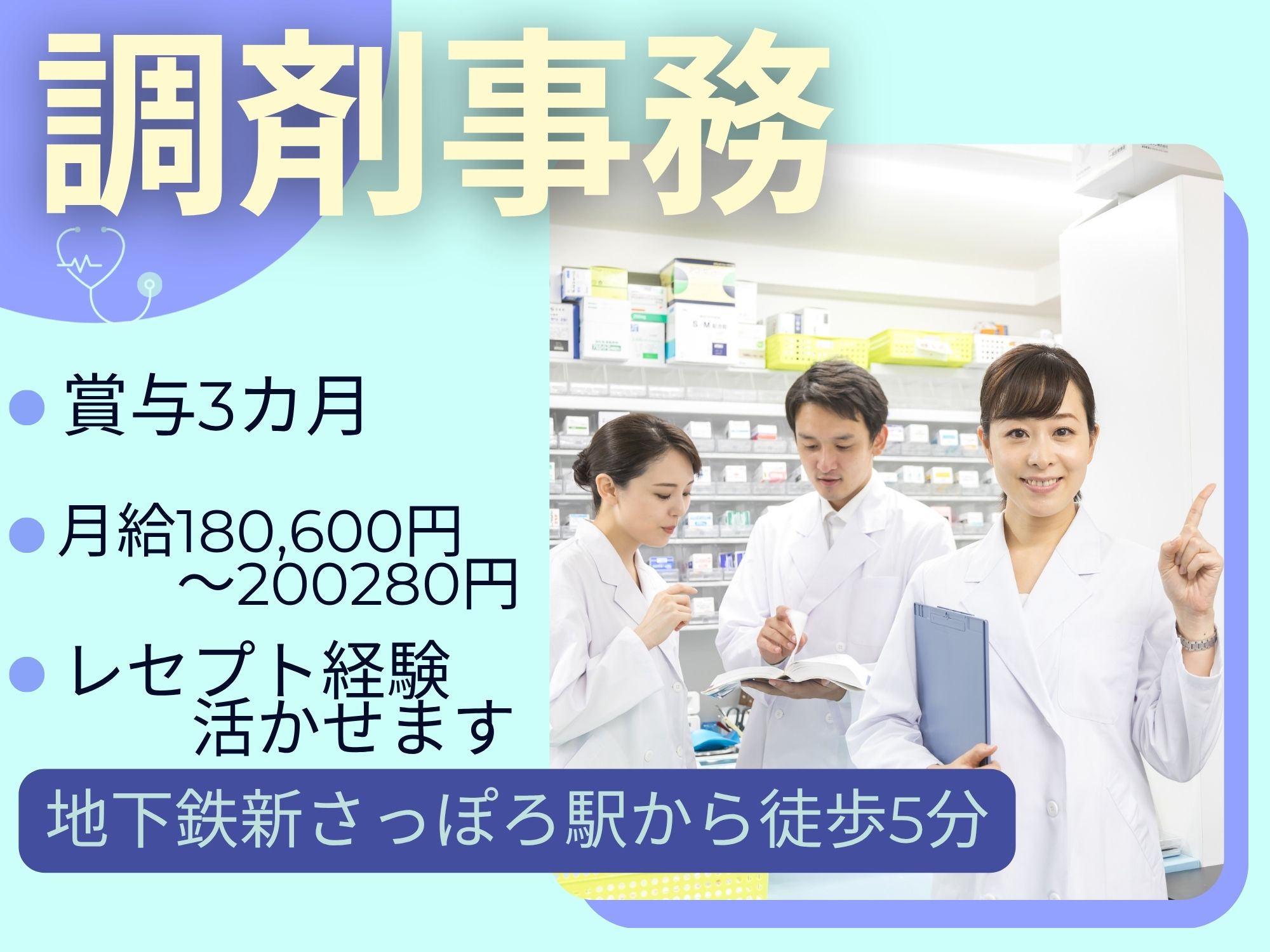 【新琴似駅から徒歩11分】月給186,000円~200,000円+賞与3ヶ月分|正社員・調剤事務|日祝休み&シフト制|日祝定休+残業少なめ!