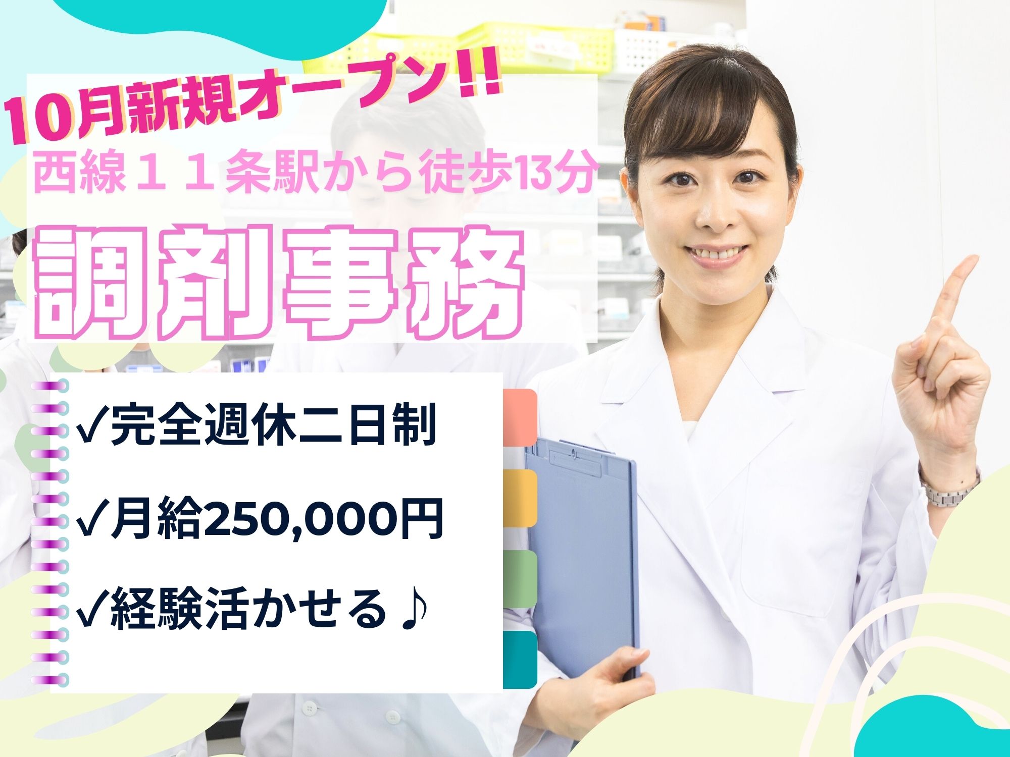 【市電:西線11条駅から徒歩13分】10月から新規オープン!オープニングスタッフ募集♪経験必須!月給250,000円/賞与,昇給あり♪完全週休2日制