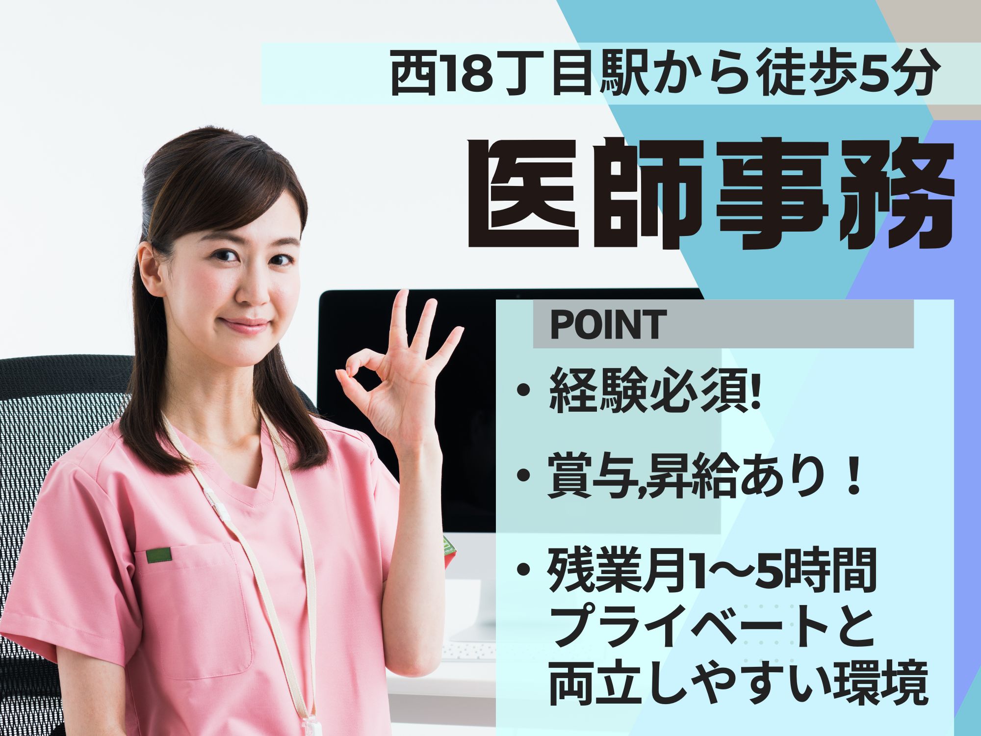 【札幌・駅チカ5分】医師事務経験を活かせる正社員*日祝固定休み!リフレッシュ休暇あり/賞与2.8ヶ月分/月給170,100~199,610円