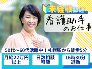 【札幌駅から徒歩5分】月収22万以上◎時給1,250円/日勤のみ/16時半退勤/日数相談可能/斗南病院/看護助手