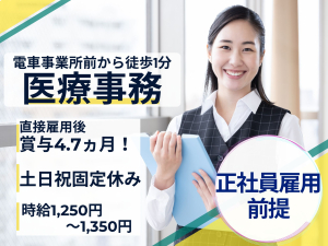 【電車事業所前から徒歩1分】経験必須!直接雇用前提!時給1,250円~1,350円◎土日祝固定休み/年間休日120日/特定医療法人社団慈藻会 平松記念病院/医療事務